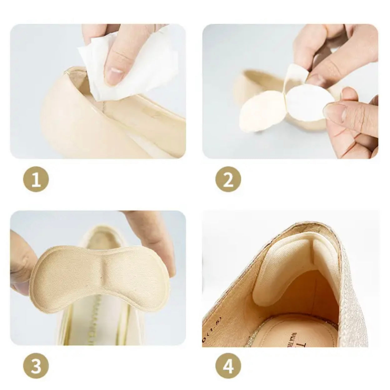 3. Ajusta la almohadilla al borde de los mocasines en la parte de los talones.