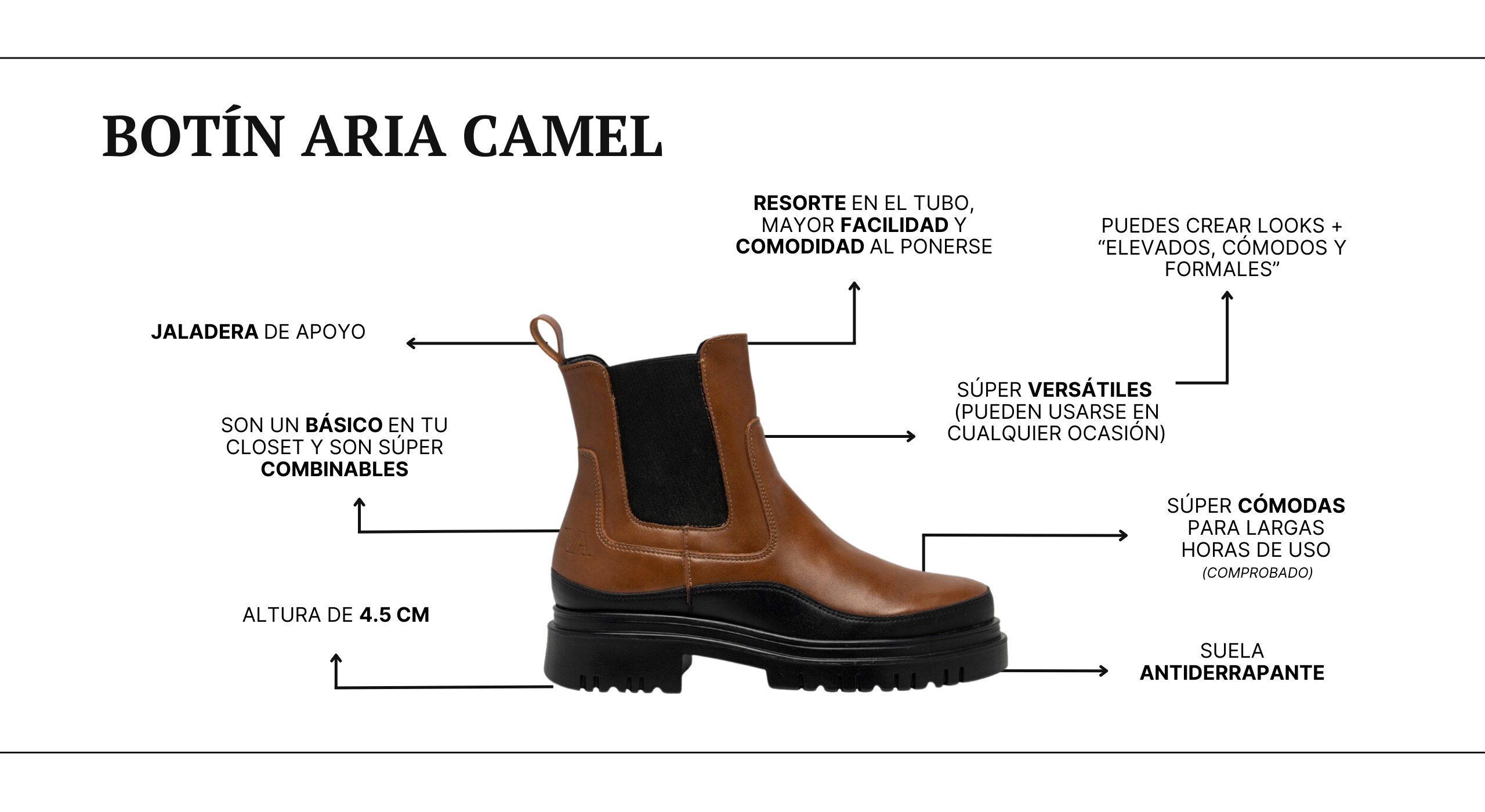El modelo ARIA está hecho de piel sintética de alta calidad. Su diseño bicolor lo vuelve ÚNICO, son versátiles, súper cómodas y fáciles de combinar. Además, su suela antideslizante te permitirá caminar con seguridad en cualquier superficie.