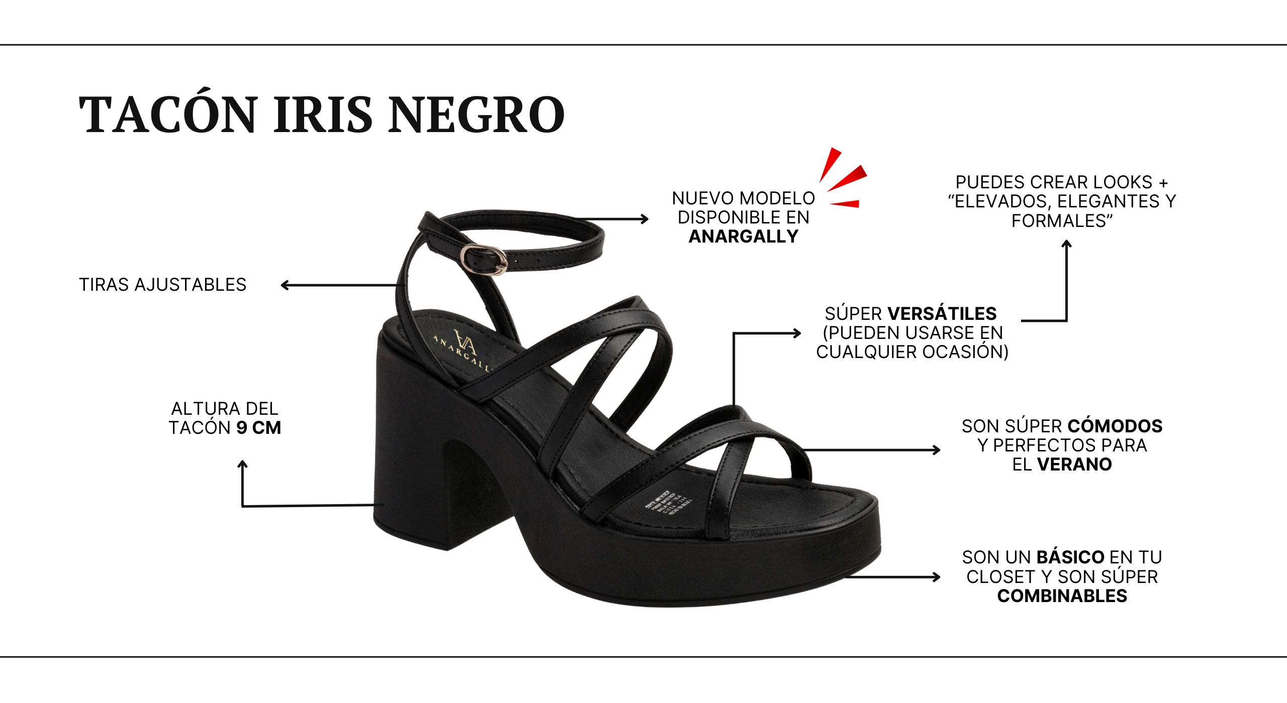 Nuestro modelo IRIS está hecho de piel sintética de alta calidad, lo que lo hace duradero y resistente. Su diseño de tiras que enganchan a tu pie lo hace súper elegante además de que la altura de la plataforma hace que sea bastante cómodo.